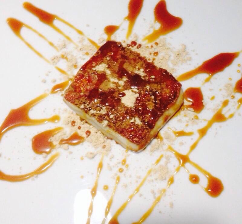 Queso a la plancha con gofio y miel de palma