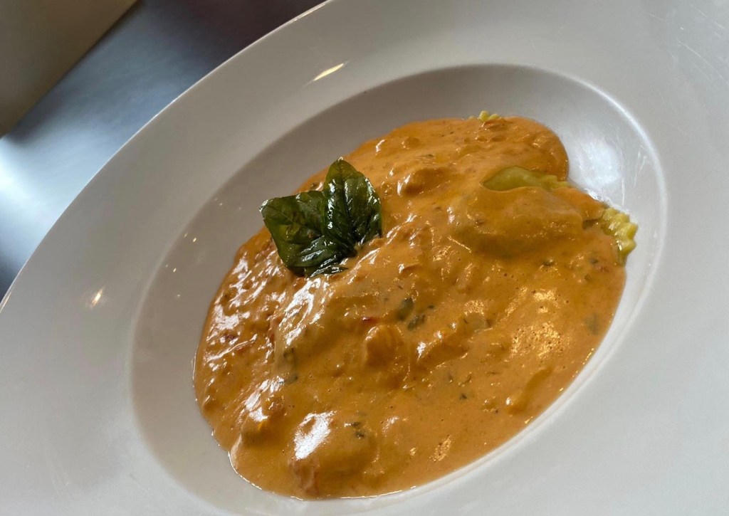 Ravioles con salsa de langostinos